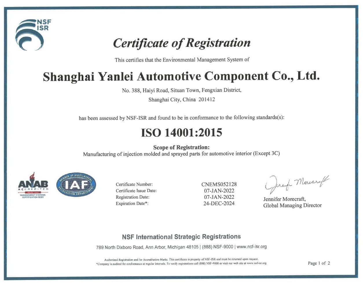 2019年5月份獲得了ITAF/TS 16949質量管理體系認證證書。